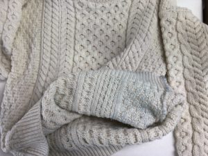 【 白セーター 重ね着したインナーからの色移り染み抜き 】