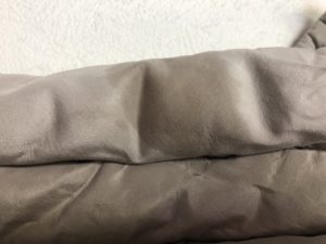 CHANEL(シャネル )コートの染み抜き事例です。裏表総シルク素材のお品に生じた色移りですが、合計7カ所あるファスナー引手部分に使用されている皮革からの移染となりす。処理に先立ちトラブルの要因である皮革を一旦取り外したいところでしたが、リフォーム業者に依頼するも「縫製が複雑過ぎて出来ない」と難色を示す返答だった事から断念し、やむを得ずに皮革をマスキングして更なるトラブル拡大発生に備えさせて頂きました。しっかりと色移りした状態でしたので除去作業は困難を極め、加えてデリケートなシルクの質感を損なわないように配慮しながらの取り扱いとなりましたが、最終的には心配された不具合の発生もなく、移染についてもほぼ完全に除去する事が出来ております。