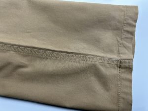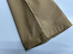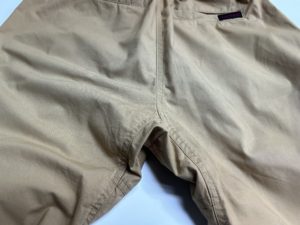 綿パンツの染み抜き事例です。お尻部分全体に付着した黒ずみ汚れに加え、裾部分には自転車のチェーンに巻き込まれた際に付着した機械油が付着している状態でした。既に染みを処理された形跡が有り、強固に汚れが刷り込まれた状態でしたが、弊社にて適切に処理させて頂いた結果、問題なく除去出来ております。