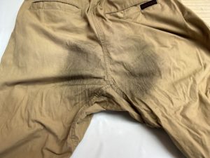 【綿パンツ自転車チェーン巻き込み黒ずみ汚れの染み抜き】