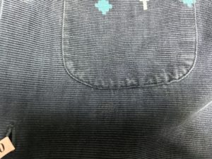 タウンクラフトコーデュロイシャツをご依頼頂きました。1950年代に製造されたとみられるヴィンテージ品で、染みの付着に伴い脱色が生じている状態も見られました。同ブランドは米チェーンストア系のプライベートブランドとしてスタートした歴史を有する等、古着ファンにとっては根強い人気を誇るカジュアルアイテムですが、目立つ染みを染み抜きと染色によって綺麗にさせて頂きました。