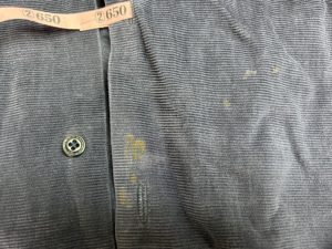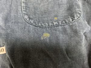 タウンクラフトコーデュロイシャツをご依頼頂きました。1950年代に製造されたとみられるヴィンテージ品で、染みの付着に伴い脱色が生じている状態も見られました。同ブランドは米チェーンストア系のプライベートブランドとしてスタートした歴史を有する等、古着ファンにとっては根強い人気を誇るカジュアルアイテムですが、目立つ染みを染み抜きと染色によって綺麗にさせて頂きました。