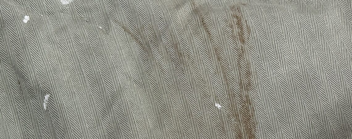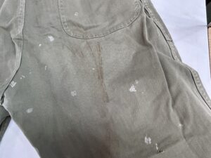 「40‘S最初期型P-41HBTトラウザーズパンツに付着した接着と鉄錆の染み抜き」