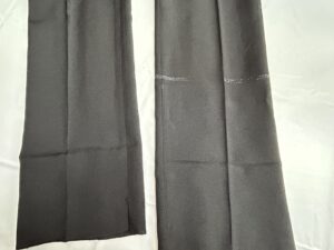 学生服ズボンをご依頼頂きました。新学期が近付くと必ず依頼される事例がズボンの裾直しに用いる「裾上げテープ」の染み抜きです。特に中学生くらいの成長期は身長が急に伸びる事から、頻繁にズボンの丈を調整する必要がある事かと思います。そんな時に便利なのが裾上げテープ等の接着剤ですが、欠点は、裾直しをする際にテープがきれいに剥がれずに生地に接着剤が残ってしまう事です。新学期を目前に剥がそうにも剥がせない状態で、クリーニング店に依頼するも、急ぎでの対応はおろか、染み抜き自体を引き受けてくれないケースが多いようです。仮に引き受けてくれた場合でも、裾上げテープの染みはかなり強固に付着してる事が多いため、必然的に染み抜き料金も高額になりがちです。そのような状況下、せんたく屋太郎では学生服や職場の制服などは、可能な限りお急ぎで優先的に染み抜きを実施させていただいております。染み抜き代金についても「安くできる」とまでは言えないまでも、最新の技法を用いることによって、費用を極力抑え、お急ぎにも対応できる体制を整えております。今回の事例についても、ご依頼品が県外から到着した直後にさっそく染み抜きに着手、その翌日には発送させていただき、お手元には中2日でお届けさせていただいております。もちろん裾上げテープの染みも跡形もなく完全に除去。これで新学期も気持ちよく迎えていただけることかと思います。