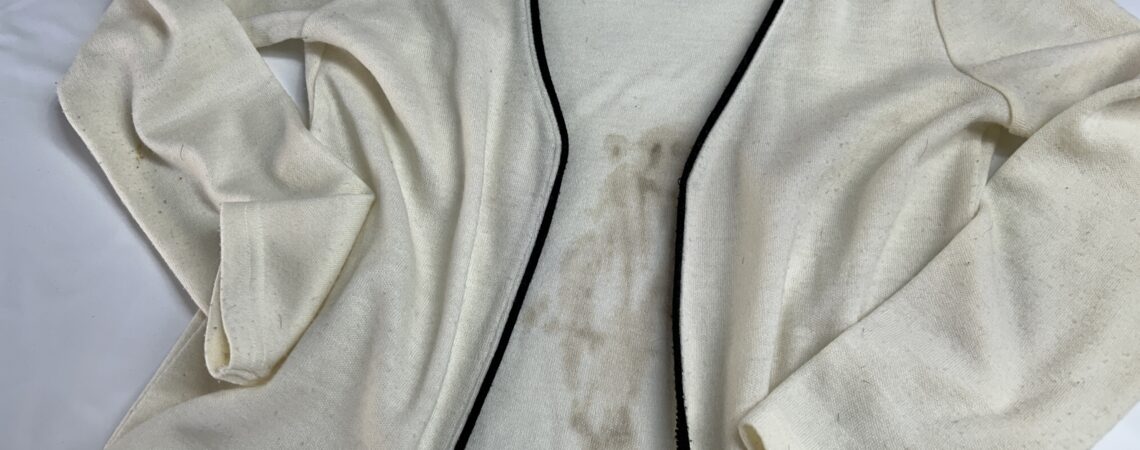 ヘアカラー剤の染み抜き事例です。カットソーの首筋部分に濃く目立つ状態で付着してお Read more…