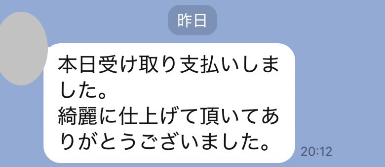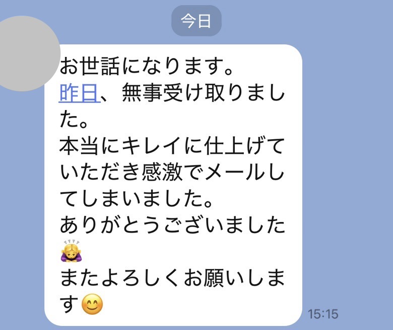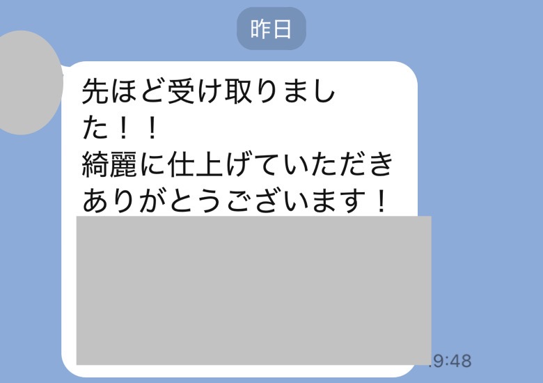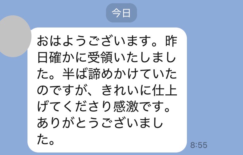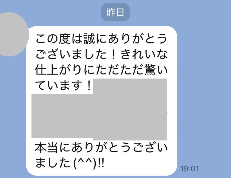 大変綺麗に仕上げていただき、ありがとうございます。