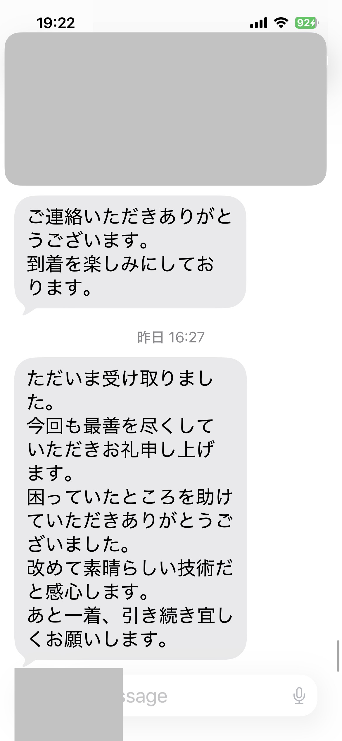 ただいま受け取りました。今回も最善を尽くしていただきお礼申し上げます。