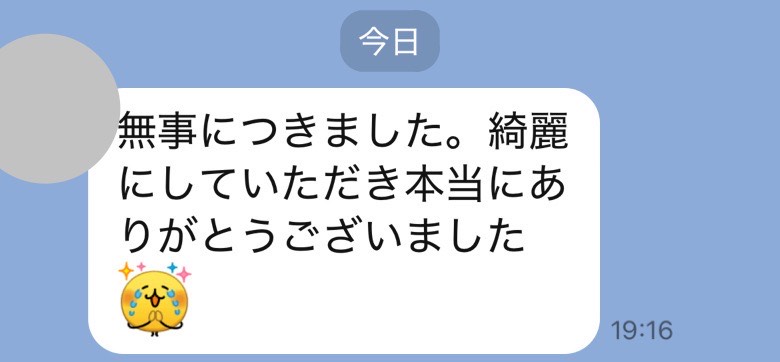 料金も見積もりよりだいぶ安くして頂き、ありがとうございます。助かりました。