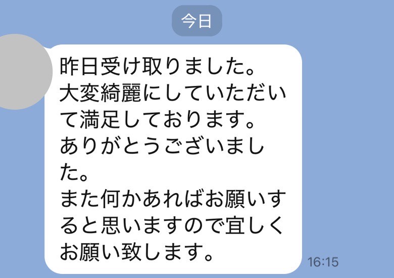 本当にキレイに仕上げていただき感激でメールしてしまいました。