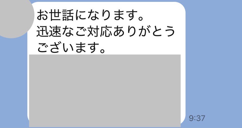 すばやく対応していただきありがとうございました。