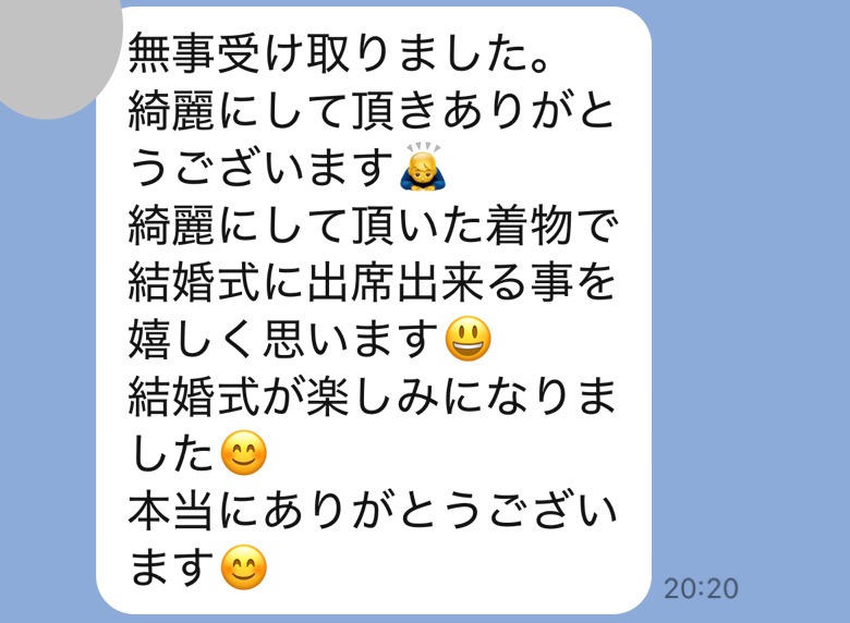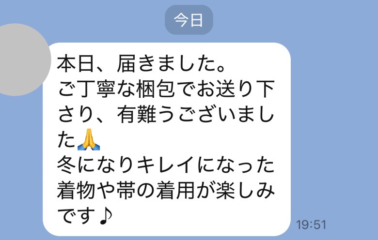 喪服届きましたありがとうございました、また何かありましたら、お願いします。
